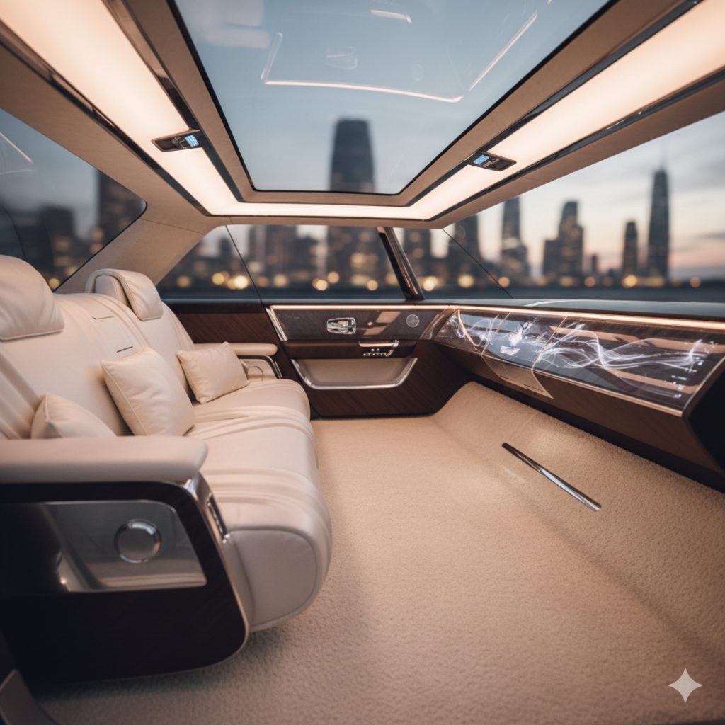 Step inside, and you’ll realize this isn’t a car cabin—it’s a lounge. There is no steering wheel, no dashboard, and no pedals.
